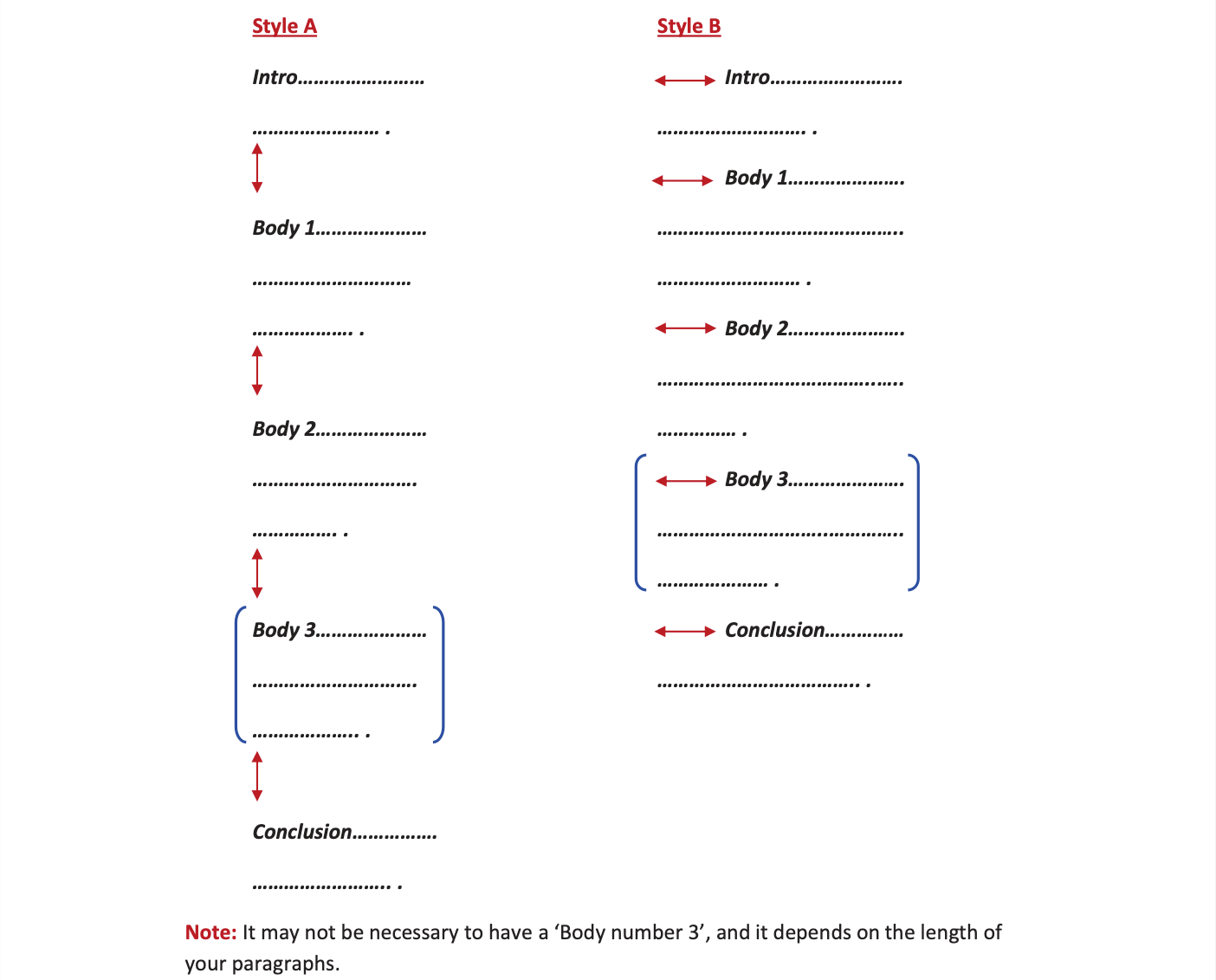 Finally, I recommend you choose one specific paragraphing style and hold on to it (as the figure below). Though it might not hugely affect your final score, when presented with a proper, well-thought-out essay, it is always more pleasing to the eyes of our examiners.